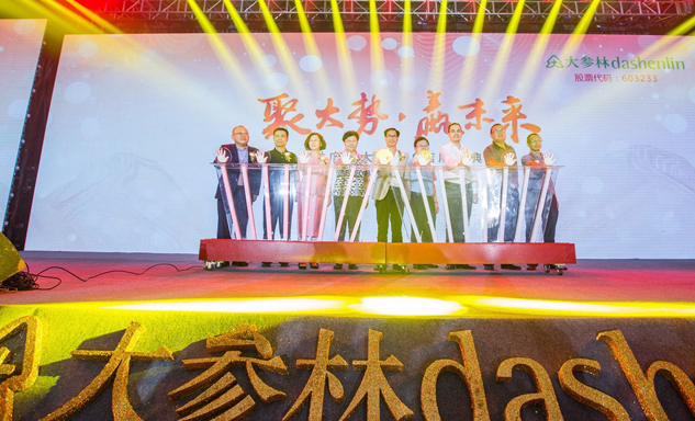 AG庄闲药业集团董事长刘景萍女士与大参林医药集团董事长柯云峰先生、中国医药商业协会执行会长付明仲女士等嘉宾共同开启了“聚大势•赢未来"大参林工商合作峰会的大幕。